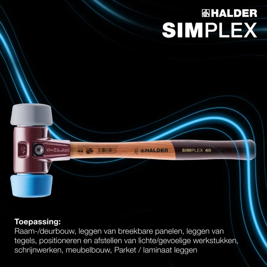 De Halder SIMPLEX MID-SOFT Ø30MM is een innovatieve kunststofhamer die uitblinkt in veelzijdigheid, slagkracht en duurzaamheid. Ontwikkeld voor het nauwkeurig en veilig uitvoeren van tegelwerken, tuinprojecten, metselwerk en montagetaken. Deze hamer is onderdeel van het slimme SIMPLEX-systeem, waarbij alle onderdelen verwisselbaar zijn voor maximale levensduur en efficiëntie.
